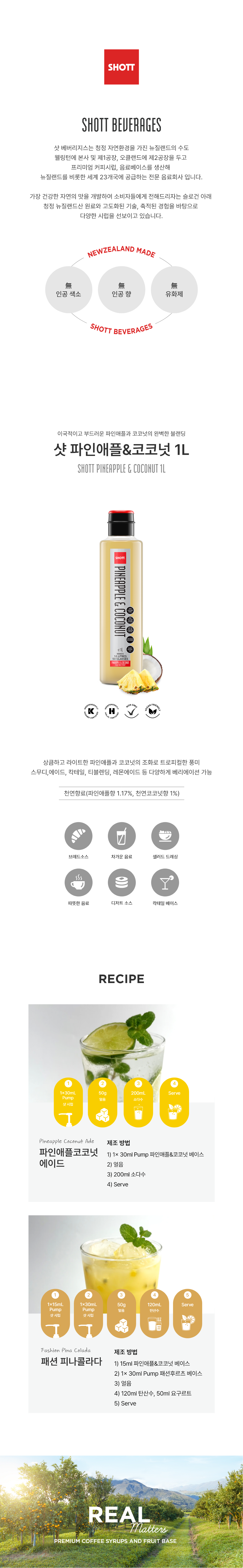 '샷 파인애플&코코넛'은 상큼하고 라이트한 파인애플과 달콤한 코코넛이 블랜딩 되어 트로피컬한 풍미를 선사합니다.